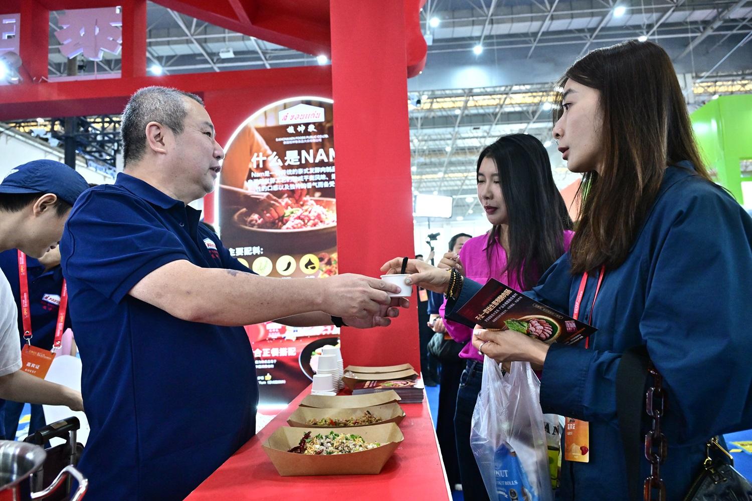 4月19日,在河南島上草食品有限公司(簡稱島上草食品)的展位上,十多款飲品整齊陳列。前來品鑒、咨詢、洽談的采購商絡(luò)繹不絕。該公司總經(jīng)理閆紅偉笑容滿面,熱情推介。